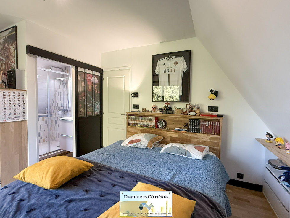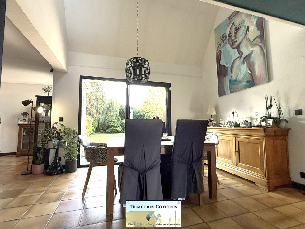 Une maison familiale située à Octeville-sur-mer, offrant la vie d'une ville à la campagne, au calme, paisible tout en étant proche du Havre et de son agglomération. Le portail franchi, une allee vous menera jusqu'à l'entrée de la maison, soignée. Le hall d'entrée est vaste et accueillant et offre des rangements, ainsi qu'un accès à un sous sol complet. Le séjour cathédrale, inondé de lumière et ouvert sur la terrasse et le jardin est particulièrement agréable, Il bénéficie en outre d'une cheminée. La cuisine aménagée est spacieuse et conviviale, idéalement équipée. Un couloir vous menera à une tres belle chambre située en rez de chaussée, avec salle de bain attenante récemment rénovée. A l'étage, un vaste palier dessert trois chambres lumineuses et spacieuses, dont une avec salle de douche, un vestaire et un cabinet de toilette. La maison offre aussi un sous sol complet, tres sain, permettant de nombreuses activités. L'ensemble est particulierement agréable, au gout du jour, et confortable. Le jardin est spacieux, et offre une grande intimité grace aux nombreux arbres qui le bordent. La maison est chauffée electriquement et également dotée de panneaux solaires ce qui permet de minimiser grandement la facture. Les huisseries sont en double vitrage et l'assainissement raccordé au tout à l'égout. Le garage peut accueillir deux voitures.