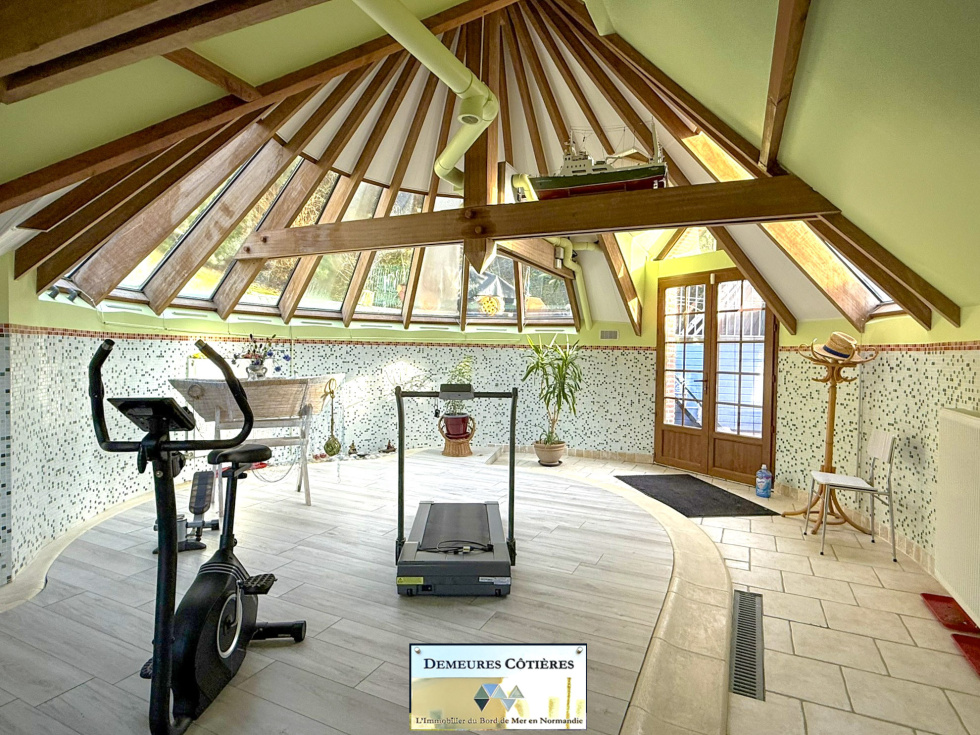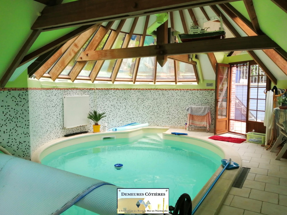 Demeures Cotieres vous propose une propriété atypique dominant YPORT, à quelques minutes à pied des commerces du village et de la plage. Un emplacement stragégique, au calme, sans nuisances et proche de tous les centres d'intérets d'YPORT. C'est une propriété tres complete que nous vous proposons puisqu'elle abrite : un garage, une maison en tres bon état, une piscine (à remettre en service mais récente), un jardin ainsi qu'un parc boisé, diverses dépendances. Le tout au coeur d'YPORT ! Un porche d'entrée vous permettra d'accéder au garage. Vous cheminerez ensuite en direction de la maison, dominant YPORT. Au rez de chaussée, vous bénéficierez d'une vaste entrée - jardin d'hiver de 11 m2, entrée avec dressing (6 m2), grand séjour avec poele et espace bar (37 m2), couloir, cuisine aménagée et équipée (9,3 m2), arrière cuisine, wc, salle de bais (7,75 m2) A l'étage, vous profiterez d'une chambre avec dressing (17,5 m2), chambre avec placards (14,75 m2), wc, chambre avec lavabo (10,5 m2) et SURTOUT une superbe extension abritant une piscine avec nage a contre courant de 28 m3 a remettre en service mais récente (le liner est à changer), salle de remise en forme et salle de douche.. Techniquement, la maison est en excellent état : tres bonne performance thermique : classement D, toitures en tres bon état, huisseries double vitrage, chauffage piscine par pompe a chaleur, chauffage pompe a chaleur et electrique, interphone, visiophone et alarme, installation assainissement collectif conforme. Les espaces extérieurs offerts par cette propriété ne pourront que vous séduire au coeur d'une station balnéaire : plusieurs terrasses, pelouses, zone boisée etc.. Un coup de coeur !