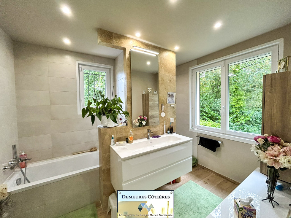 Dominant le village d'YPORT, et bénéficiant d'une situation géographique privilégiee (calme, proximité GR21), offrant plage et commerces/restaurants a pied, maison de qualité et en parfait état batie au coeur d'un parc paysagé et boisé, de 3112 m2. Cette maison est une excellente opportunité de vivre confortablement a YPORT, dans une maison saine, bien chauffée et agencée, avec possibilité de vie de plain pied, et lumineuse. Au rez de chaussée, une grande entrée dessert une grande piece de vie dotée d'un poele a bois, communiquant aisément avec la terrasse exposée sud et le jardin. La cuisine aménagée et équipée, récente et de belle taille, offre une tres belle vue sur la mer. Un couloir dessert ensuite un espace nuit, comprenant une chambre, une salle de bain et douche particulierement agréable, cabinet de toilette. A l'étage, vous profiterez d'une tres belle piece paliere, desservant trois chambres, salle de douche et wc. Au sous sol: garage et atelier. La maison est particulièrement confortable : huisseries double vitrage, chauffage electrique performant et bonne isolation, poele a bois, alarme etc... La propriété offre en outre des extérieurs particulièrement intéressants : propriété entièrement cloturée, pelouse, espaces boisés et fleuris. Une très belle opportunité dans YPORT